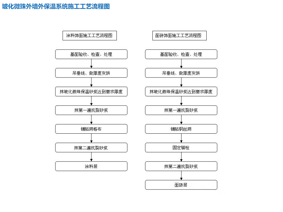 破化微珠外墻外保溫系統(tǒng)以玻化微珠保溫砂漿為保溫層,在保溫層涂抹具有防水抗?jié)B、抗裂性能的抗裂砂漿,與保溫層復(fù)合形成個集保溫、隔熱、抗裂、防火、抗?jié)B于一體的完整體系。該系統(tǒng)不僅具有良好的保溫性能,同時具有優(yōu)異的隔熱、防火性能目具有防蟲蟻噬蝕,屬于新型建筑保溫系統(tǒng)。玻化微珠保溫系統(tǒng)適用于多、高層建筑的鋼筋混凝、加氣混凝土、砌塊、磚等圍護(hù)墻的內(nèi)、外保溫抹灰工程。以及地下室、車庫、樓梯、走廊、消防通道等防火保溫工程,也適用于舊建筑物的保溫改造工程以及地暖的隔熱支承層。