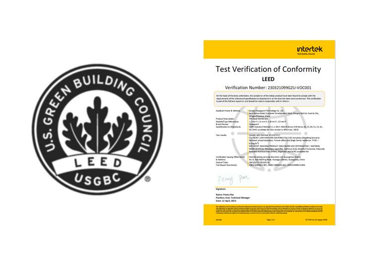 歐西盾TPO材料通過了美國LEED綠色建筑評價體系認證。LEED (Leadership in Energy &EnvironmentalDesign,能源與設計先鋒獎)是由美國綠色建筑委員會(USGBC)建立并推行的綠色建筑評價體系。LEED體系是國際上最完善、最有影響力和應用最廣泛的綠色建筑評價標準。在市場需求、品牌影響和可持續理念引導等多種因素的長期作用下,該標準已成為國內目前主流的兩大認證體系之一。
