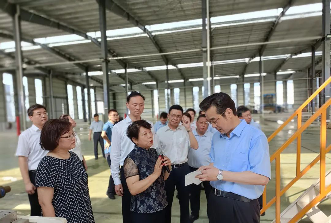 7月6日下午,淮安市市長史志軍、副市長王向紅一行在洪澤區區委書記張沖林、區長張灝、常務副區長宋月霞、經濟開發區黨工委書記朱峰、副區長陸珉、經濟開發區管委會主任劉興春等領導的陪同下到我司考察指導,總經理楊桂玲接待并陪同考察。