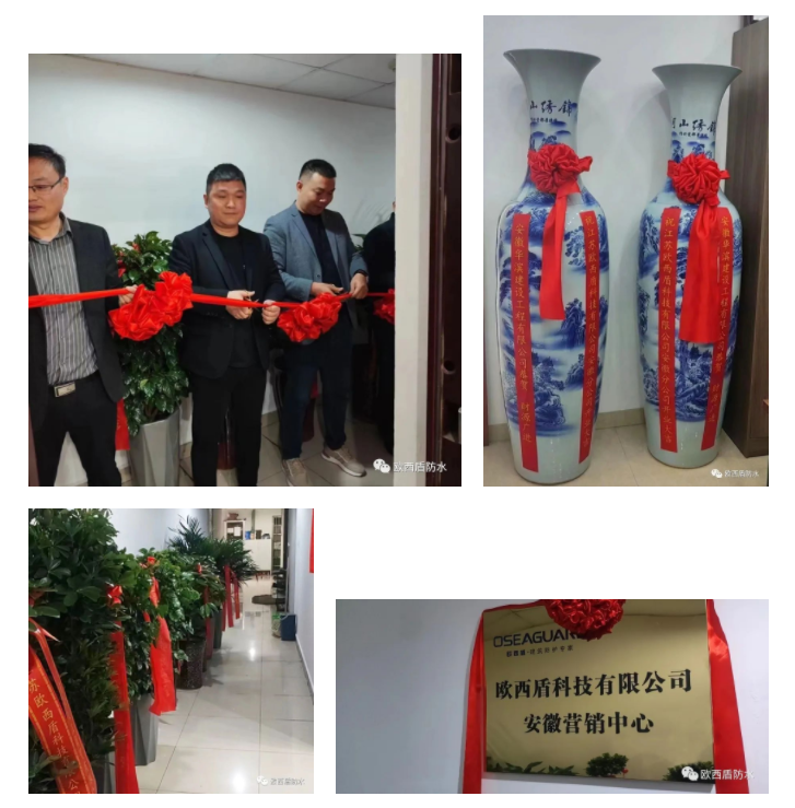 公司領導共同為歐西盾防水安徽營銷中心揭幕,開啟發展新篇章。隨著禮炮響起,歐西盾防水安徽營銷中心正式開業!