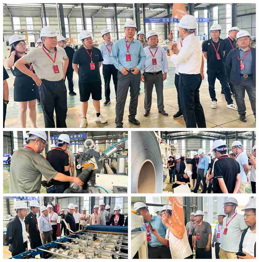 在歐西盾工作人員的引導下,青年企業家們踏入生產車間,近距離觀摩 TPO/PVC、TPS復合鋼板生產線,整個生產流程環環相扣。從原料配比的嚴格把控,到成品包裝前的多道檢測工序,清晰展現出歐西盾在防水領域精益求精的工藝水準與嚴苛的質量管控體系。