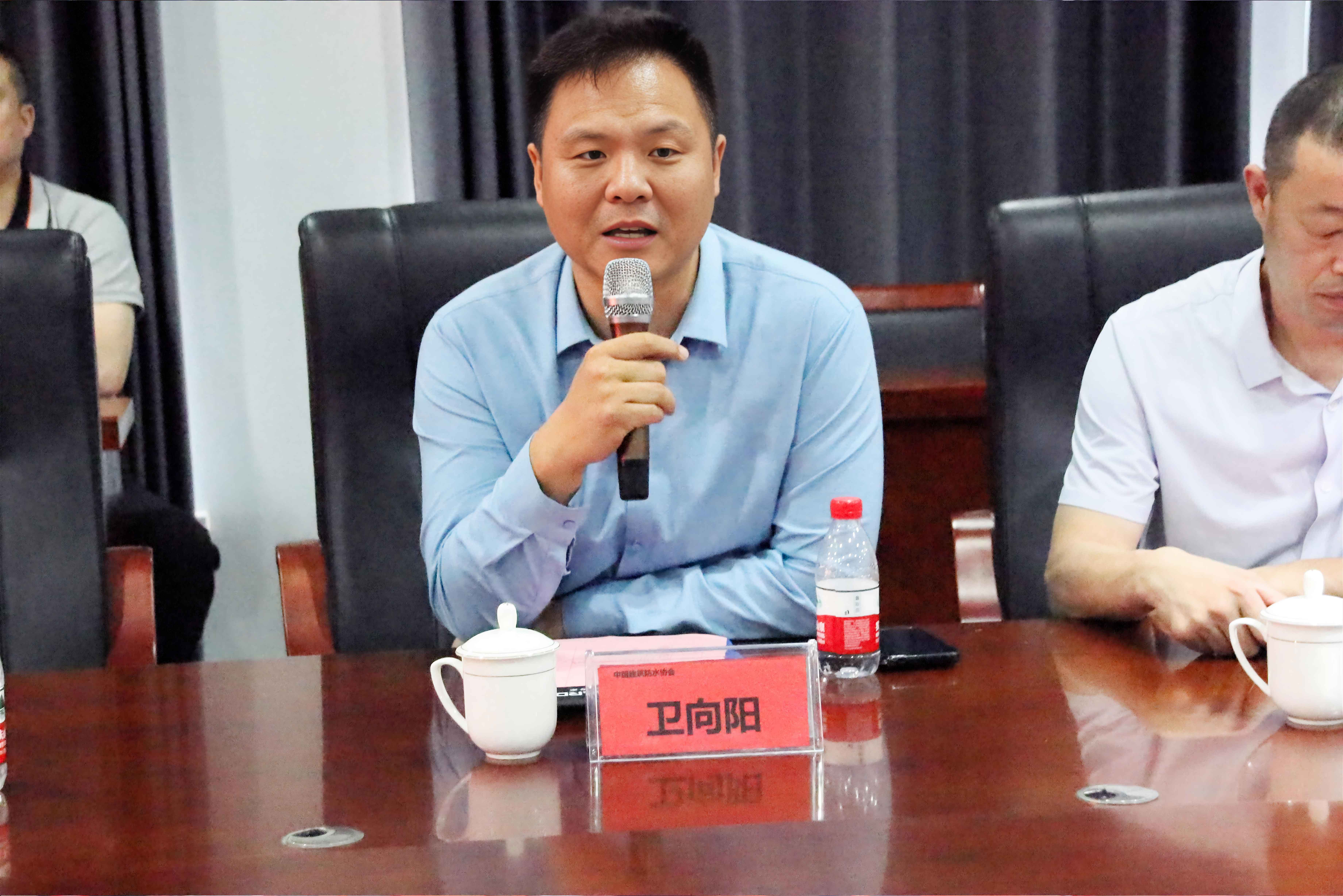 中國建筑防水協會青年企業家分會會長衛向陽先生發表致辭,此次交流旨在打破企業間信息壁壘,搭建起資源共享、協同創新的平臺,助力青年企業家在把握行業趨勢、攻克技術難題上攜手共進,推動整個行業邁向更高發展臺階。