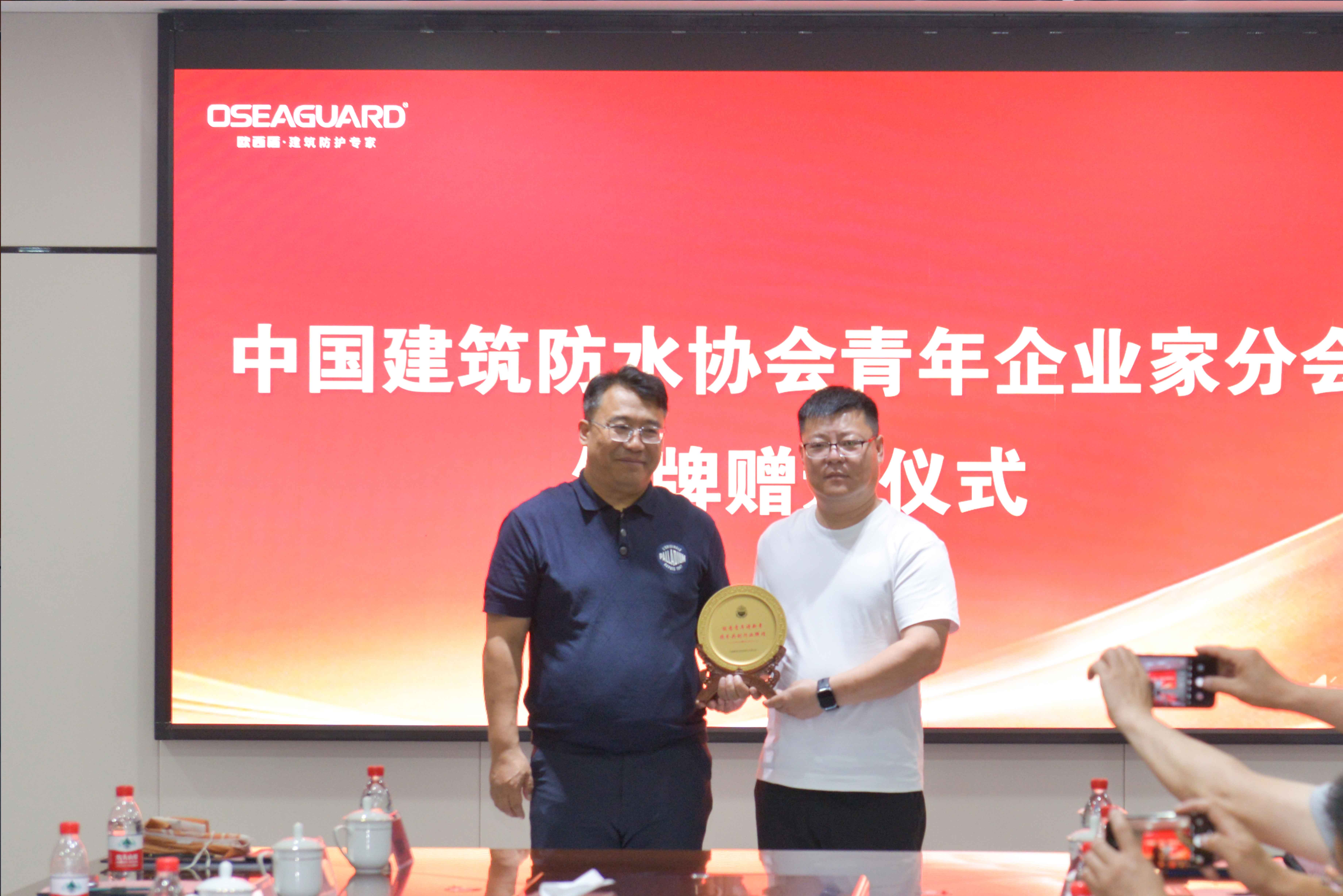 會議尾聲,青年企業家分會代表雷小衛先生向歐西盾董事長王洪波贈送銅牌,致謝其為行業發展所作貢獻。隨后,董事長王洪波先生與阿爾法董事長衛向陽先生簽訂戰略協議,攜手深化合作。