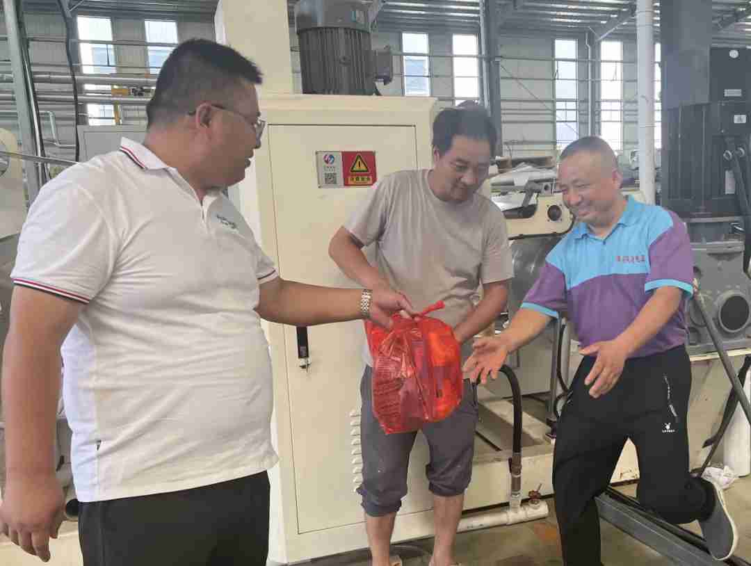 活動現場,工會主席同各位工會代表、公司管理層為堅守一線崗位的員工送上送上防暑降溫用品大禮包,禮包內立白洗衣液,雕牌洗潔精,六神沐浴露,飄柔洗發水,佳潔士牙膏,潔玉毛巾等實用物品齊全,切實為高溫下堅守崗位的職工帶來清涼。