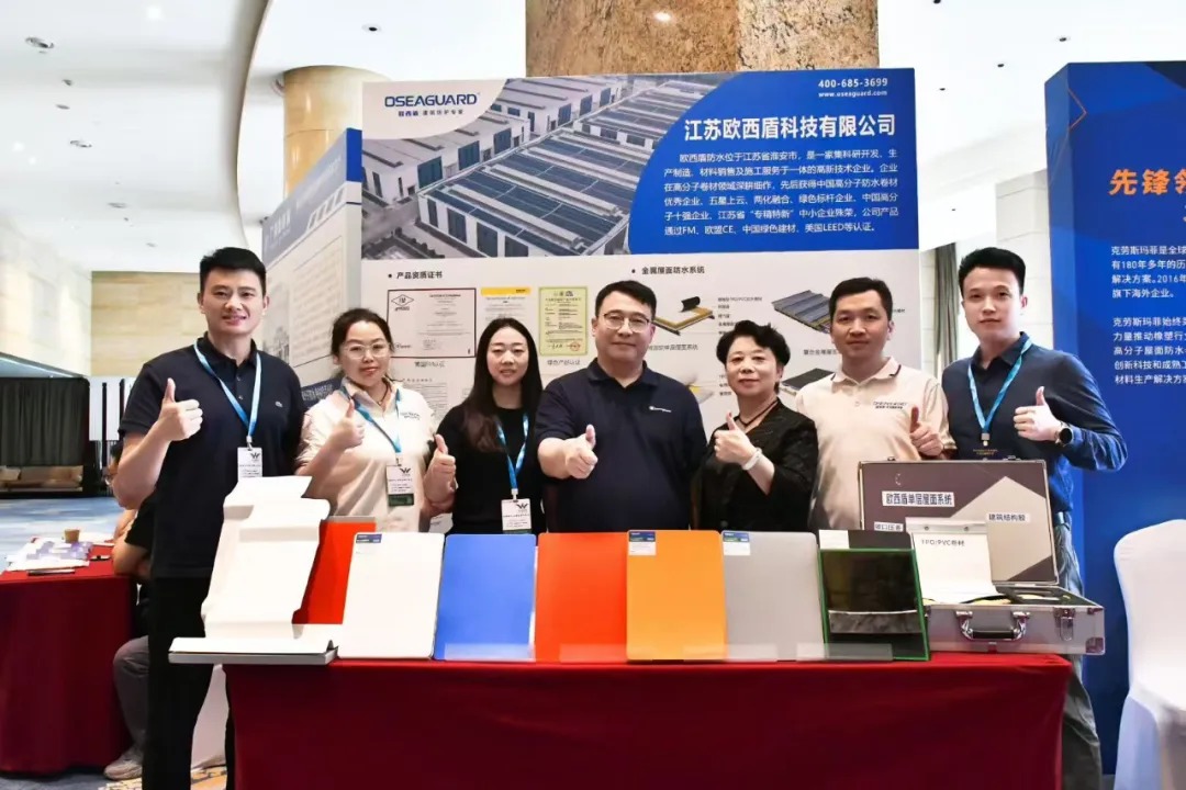 除了高端論壇的思想交鋒,歐西盾在會(huì)議現(xiàn)場(chǎng)特設(shè)的品牌展臺(tái),同樣吸引了眾多參會(huì)者駐足關(guān)注。展臺(tái)通過(guò)產(chǎn)品實(shí)物展示、技術(shù)參數(shù)手冊(cè)發(fā)放等形式,全方位呈現(xiàn)了歐西盾近年來(lái)在高分子防水領(lǐng)域的核心產(chǎn)品矩陣,包括TPO防水卷材、PVC防水卷材、TPS鋼塑瓦、ECM防水卷材、DOB防水涂料等多款明星產(chǎn)品。