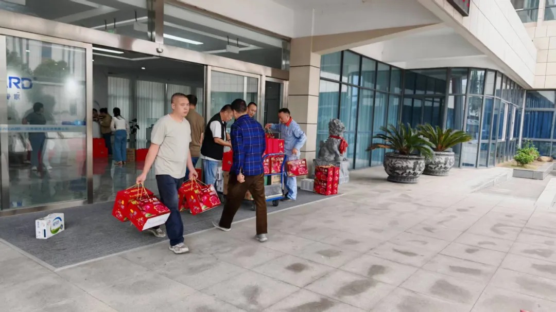 “公司每年送的節(jié)日福利都特別實(shí)在,家里過節(jié)剛好用上!”一位員工接過中秋禮盒時(shí)開心地說道。